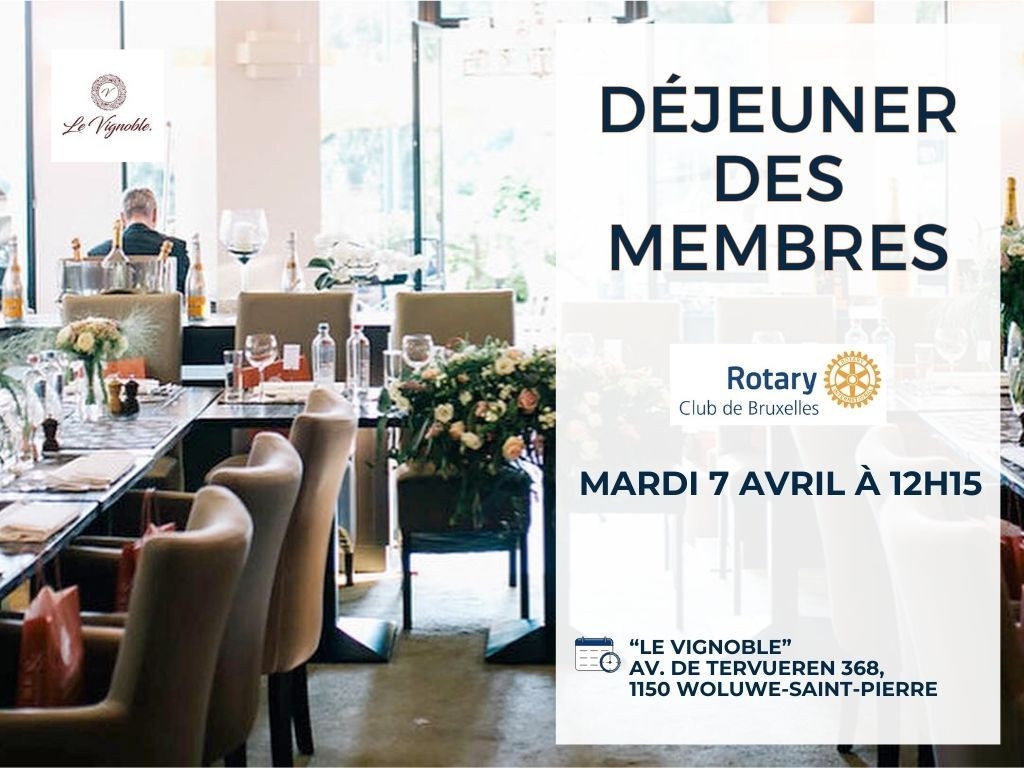 mardi 7 avril 2026 12:15-14:15, Le Vignoble, Av. de Tervueren 368, 1150 Woluwe-Saint-Pierre, Belgique